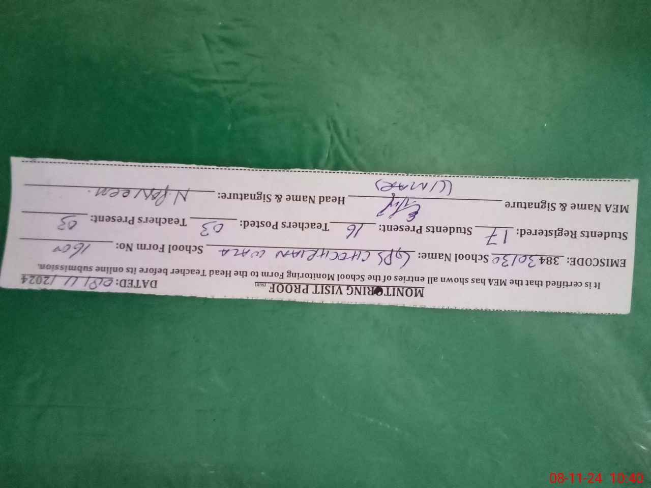 | EMIS Code: 38430130 | Name of School: GPS CHOCHRIAN WALA | |||