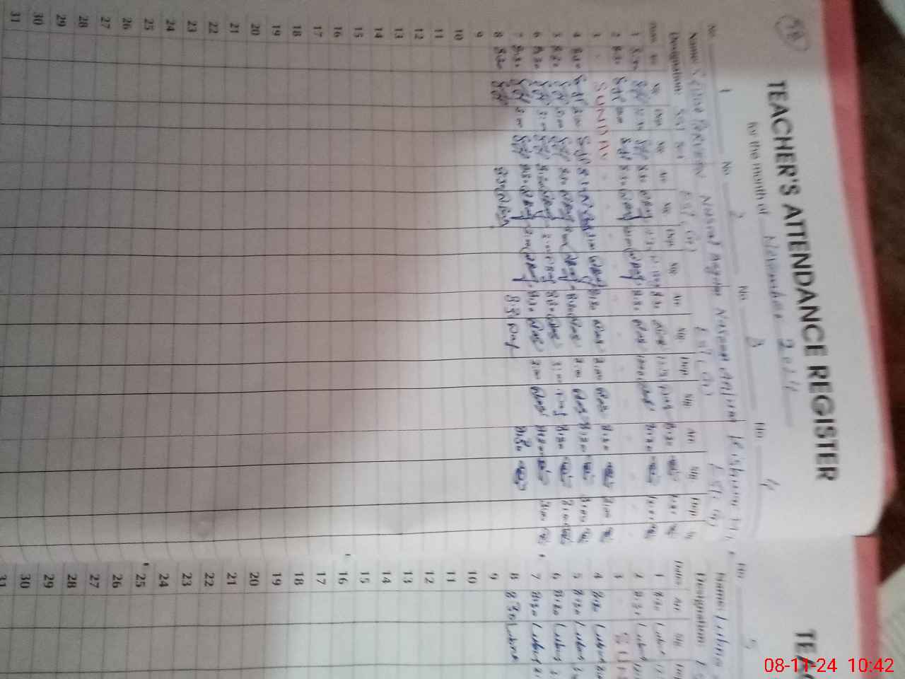 | CNIC | Full Name | Designation | R/C | Absence During Last Calender Month |