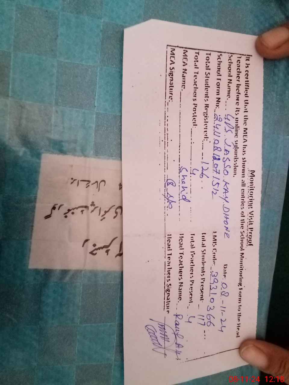 | Name: RA**** AL**** Designation: (School Headmaster's/Headmistress's) PST Phone/Cell Number: 03**** |
