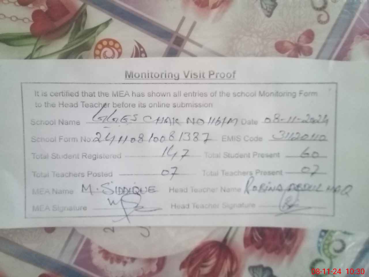 | EMIS Code: 31120110 | Name of School: GGES CHAK NO. 116/M | |||