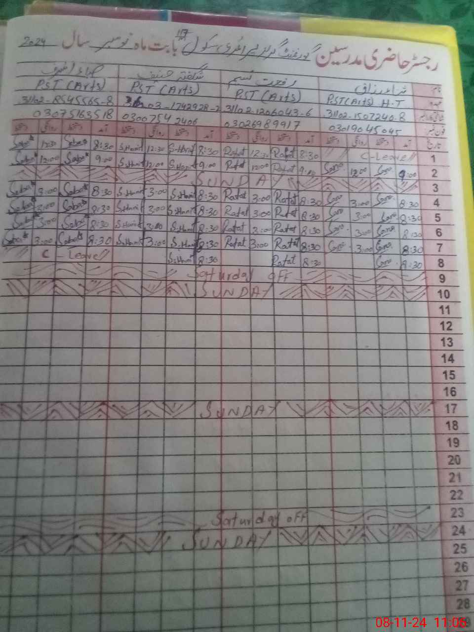 | 31**** | Sa**** As**** | PST | Regular | 0 | 0 | 0 | 0 | 0 | 0 | 0 | 0 | 0 | Casual |