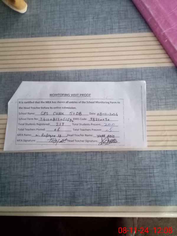 | EMIS Code: 38220090 | Name of School: GES CHAK NO. 50/DB | |||