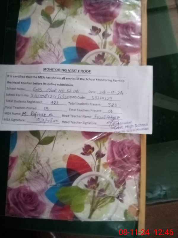 | EMIS Code: 38220229 | Name of School: GHS CHAK NO.52 DB | |||