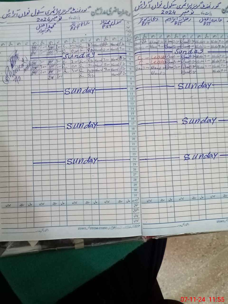 | CNIC | Full Name | Designation | R/C | Absence During Last Calender Month |