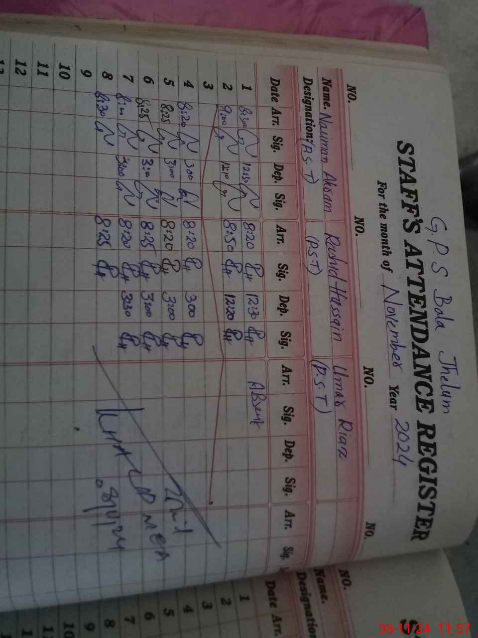 | 37**** | Um**** Ri**** | 1 | 0 | 0 | 31 | 0 | 0 | 0 | 0 | 0 | 0 | Absent (Un-Authorized) | |