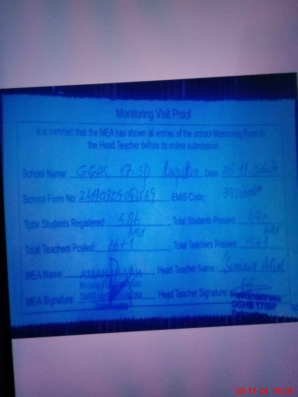 | EMIS Code: 39210060 | Name of School: GGHS 17/SP PAKPATTAN | |||