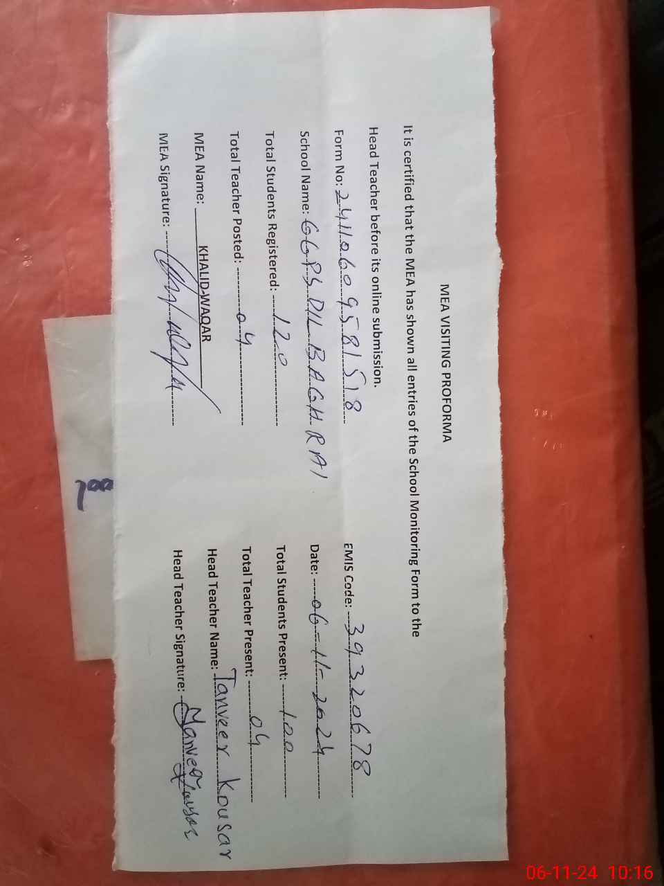 | EMIS Code: 39320678 | Name of School: GGPS DIL BAGH RAI | |||