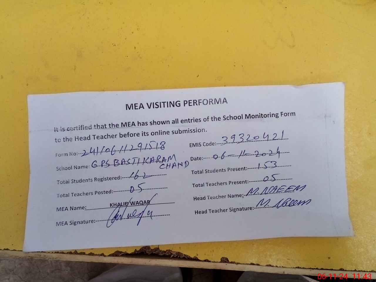 | EMIS Code: 39320421 | Name of School: GPS BASTI KARAM CHAND | |||