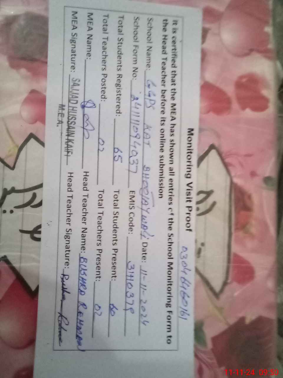 | EMIS Code: 31110379 | Name of School: GGPS KAT BHOOJAY WALI | |||