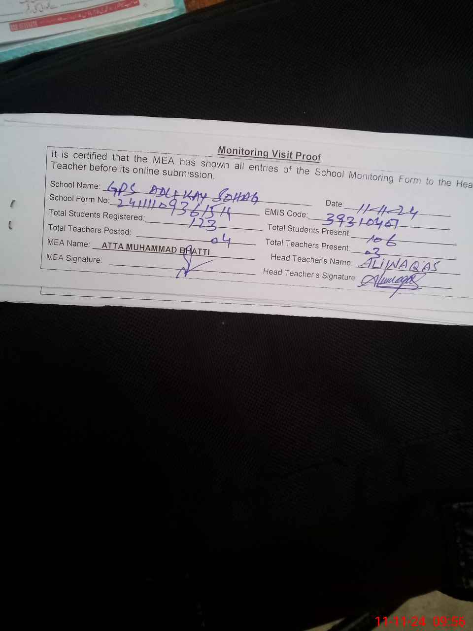 | Certified that this School was Inspected by the Undersigned MEA/DMO Today and the Information Stated Above is as Per Record. | |||||