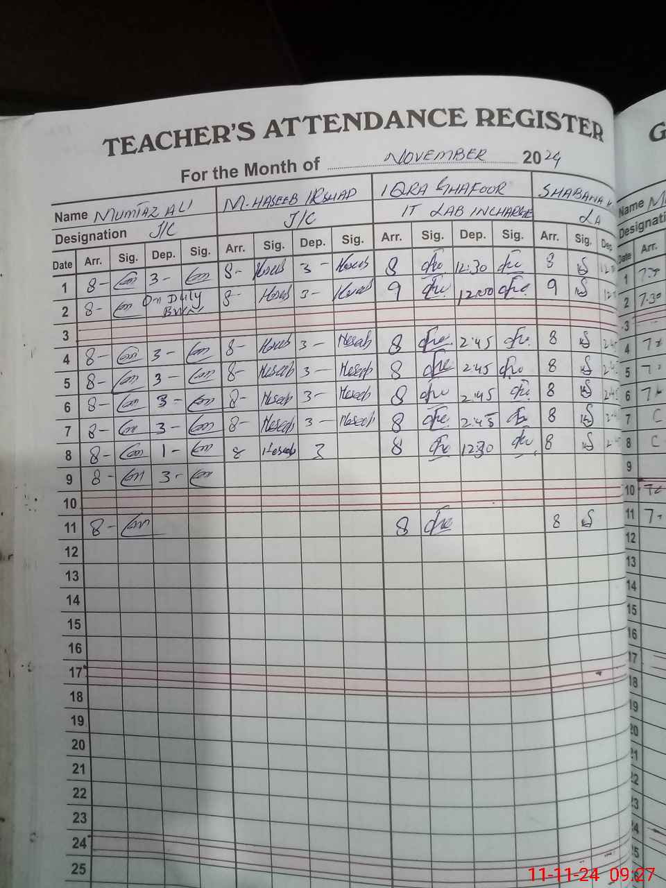 | 31**** | MHa**** Ir**** | JC | 1 | 0 | 0 | 0 | 0 | 0 | 0 | 0 | 1 | Absent (Un-Authorized) | |