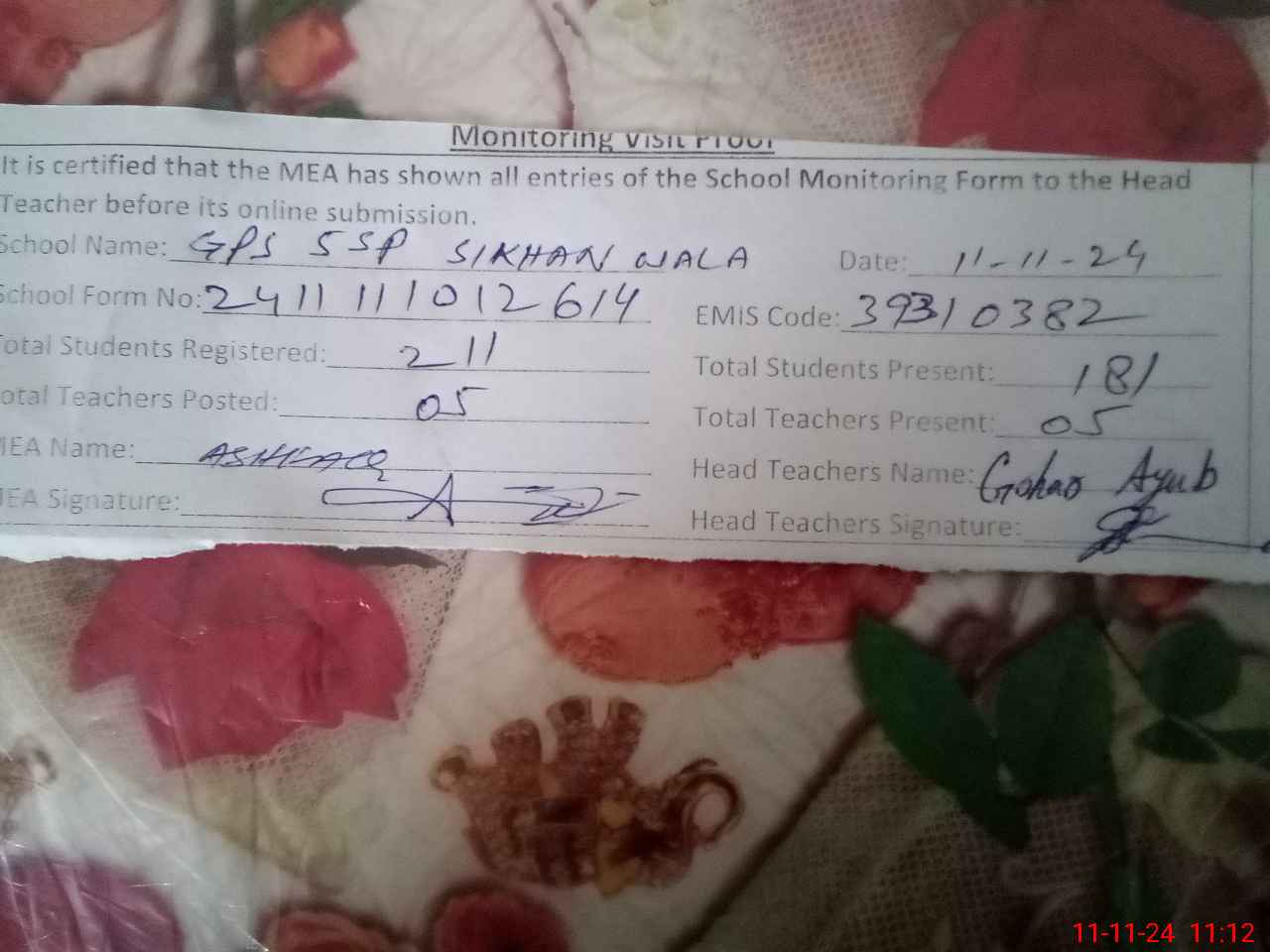| EMIS Code: 39310382 | Name of School: GPS 5-SP SIKHAN WALA | |||