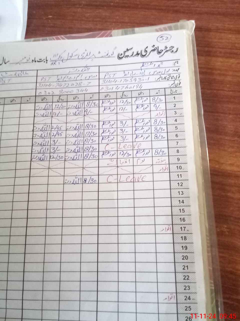 | Name: Mu**** Az**** Designation: (School Headmaster's/Headmistress's) PST Phone/Cell Number: 03**** |