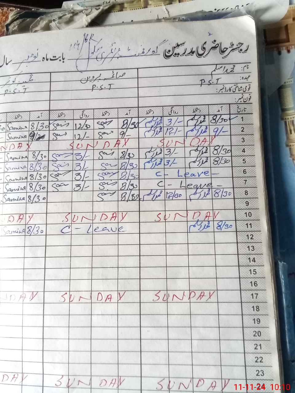 | Remarks (Use Separate Page if Required): Nsb record not available as head teacher on leave | |||||