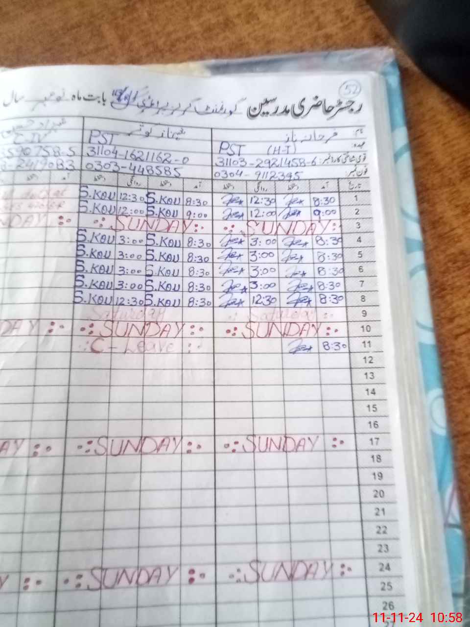 | CNIC | Full Name | Designation | R/C | Absence During Last Calender Month |