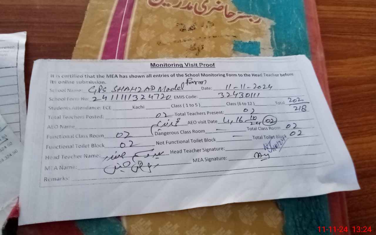 | EMIS Code: 32430111 | Name of School: GPS SHAHZAD MODEL FARM | |||