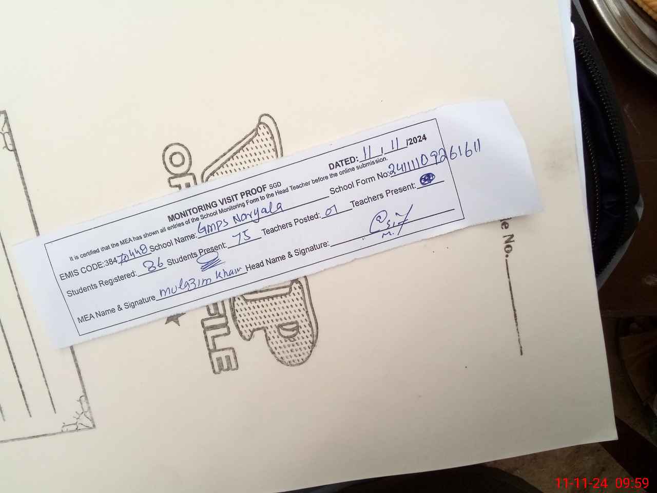 | Monitoring Date: 11-11-2024 | Start Time: 11-11-2024 09:26 AM | End Time: 11-11-2024 10:00 AM | Name of MEA: MU**** KH**** | |