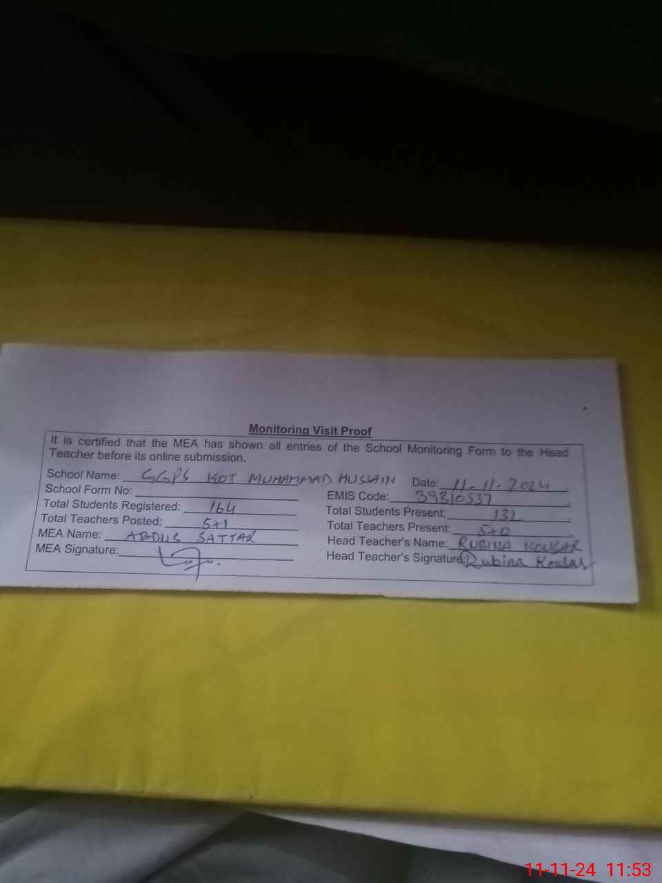 | EMIS Code: 39310537 | Name of School: GGPS KOT MUHAMMAD HUSSAIN (HUJRA) | |||