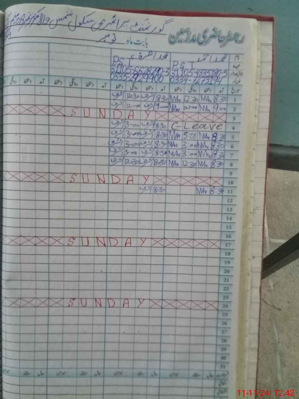 | CNIC | Full Name | Designation | R/C | Absence During Last Calender Month |