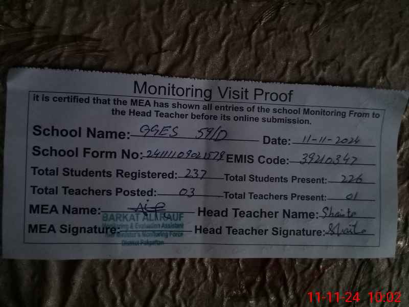 | EMIS Code: 39210347 | Name of School: GGES CHAK NO. 59 D | |||