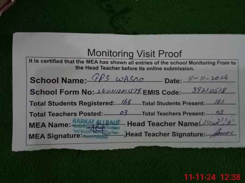 | EMIS Code: 39210518 | Name of School: GPS WASOO | |||
