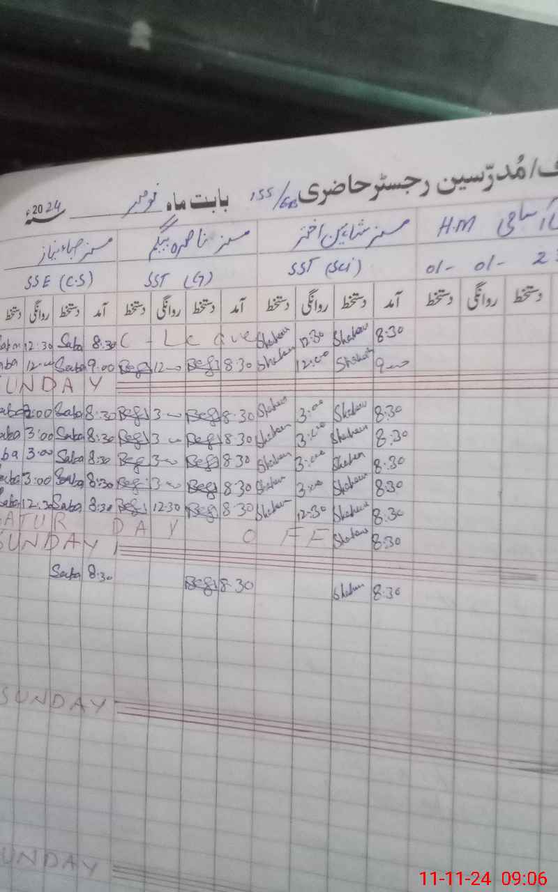 | Name: NA**** BE**** Designation: (School Headmaster's/Headmistress's) SST (GEN) Phone/Cell Number: 03**** |