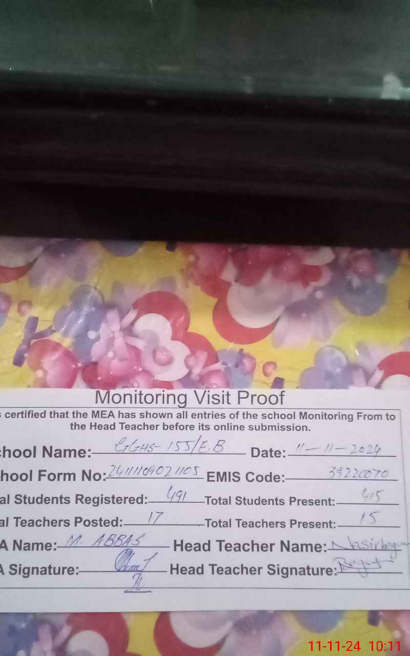 | EMIS Code: 39220070 | Name of School: GGHS 155 EB | |||