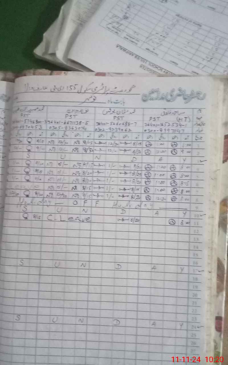 | CNIC | Full Name | Designation | R/C | Absence During Last Calender Month |
