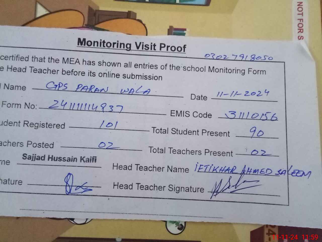 | EMIS Code: 31110156 | Name of School: GPS PARAN WALA | |||
