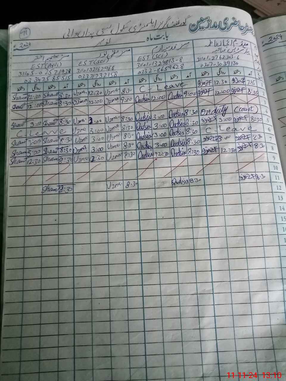 | Leave | Duty | Absent | Maternity | Medical | Ex- Pak |