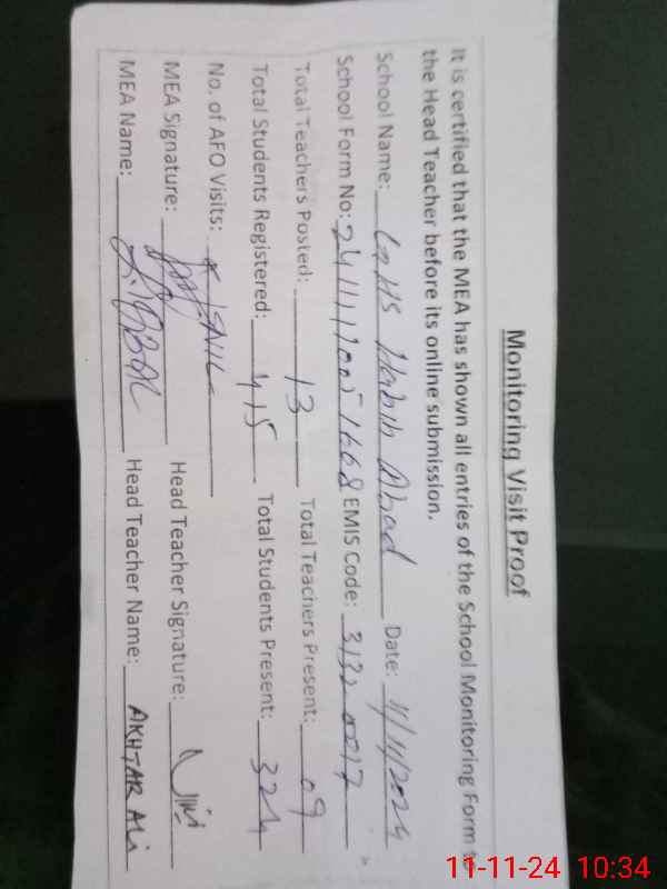 | EMIS Code: 31320017 | Name of School: GHS HABIB ABAD | |||