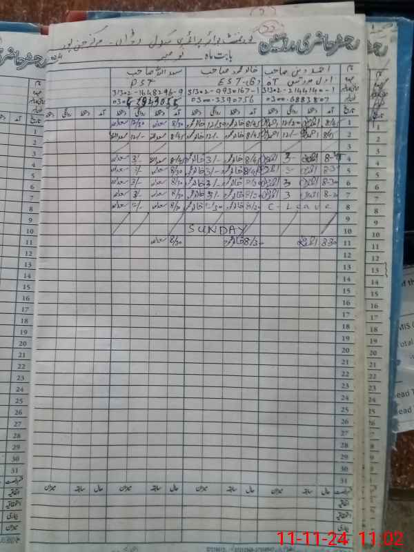 | CNIC | Full Name | Designation | R/C | Absence During Last Calender Month |