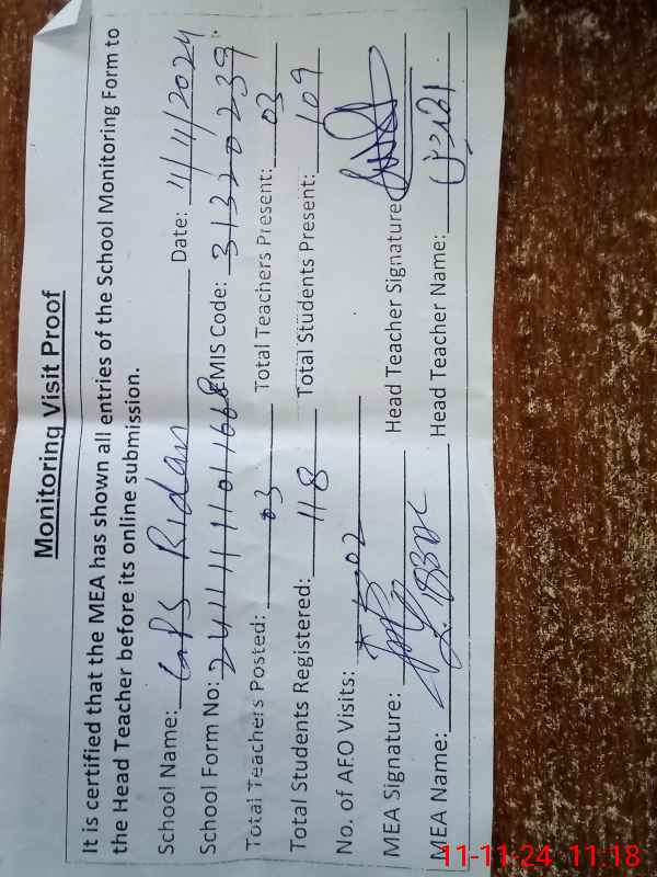 | EMIS Code: 31320239 | Name of School: GPS RIDAN | |||