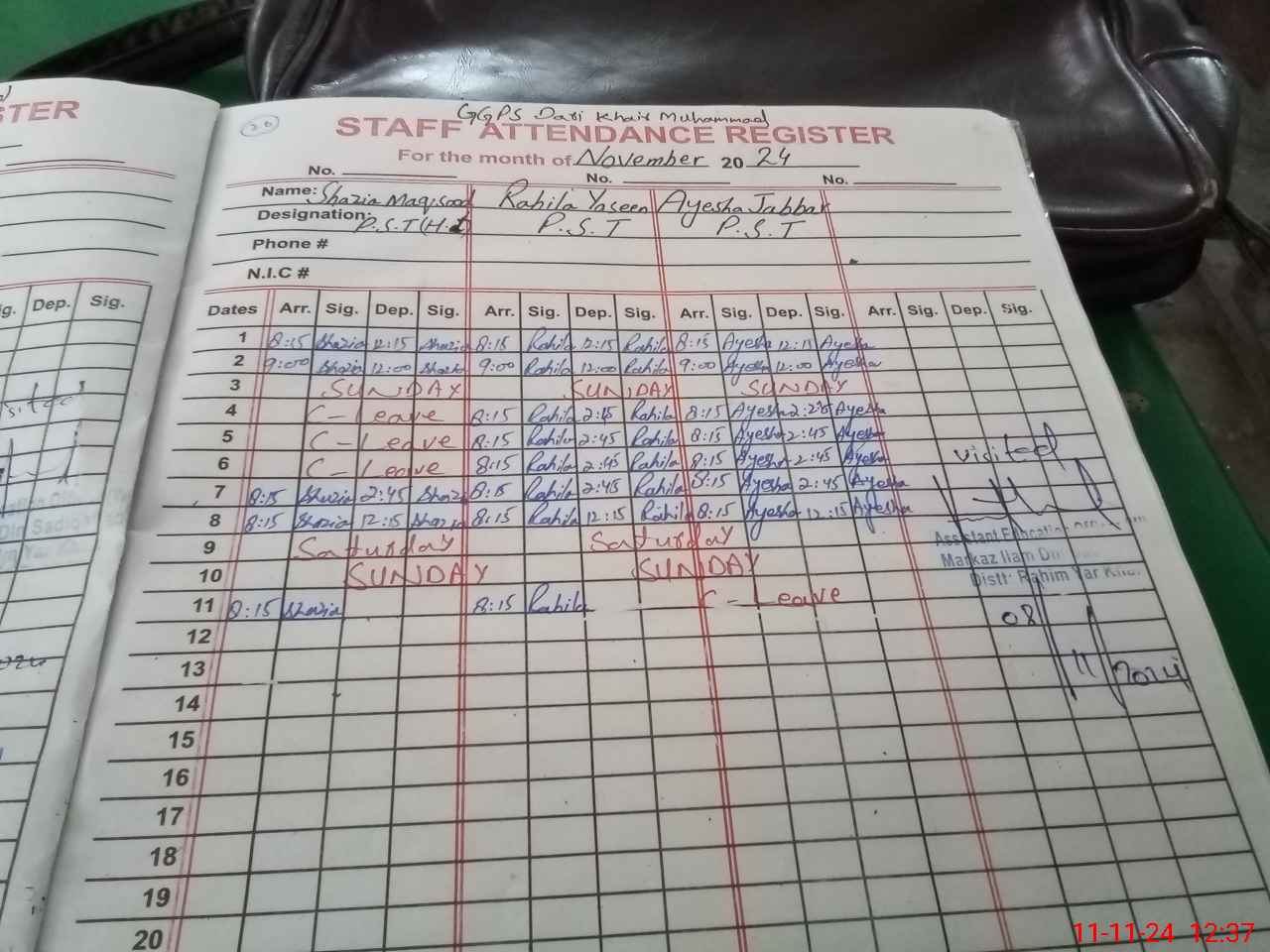 | CNIC | Full Name | Designation | R/C | Absence During Last Calender Month |