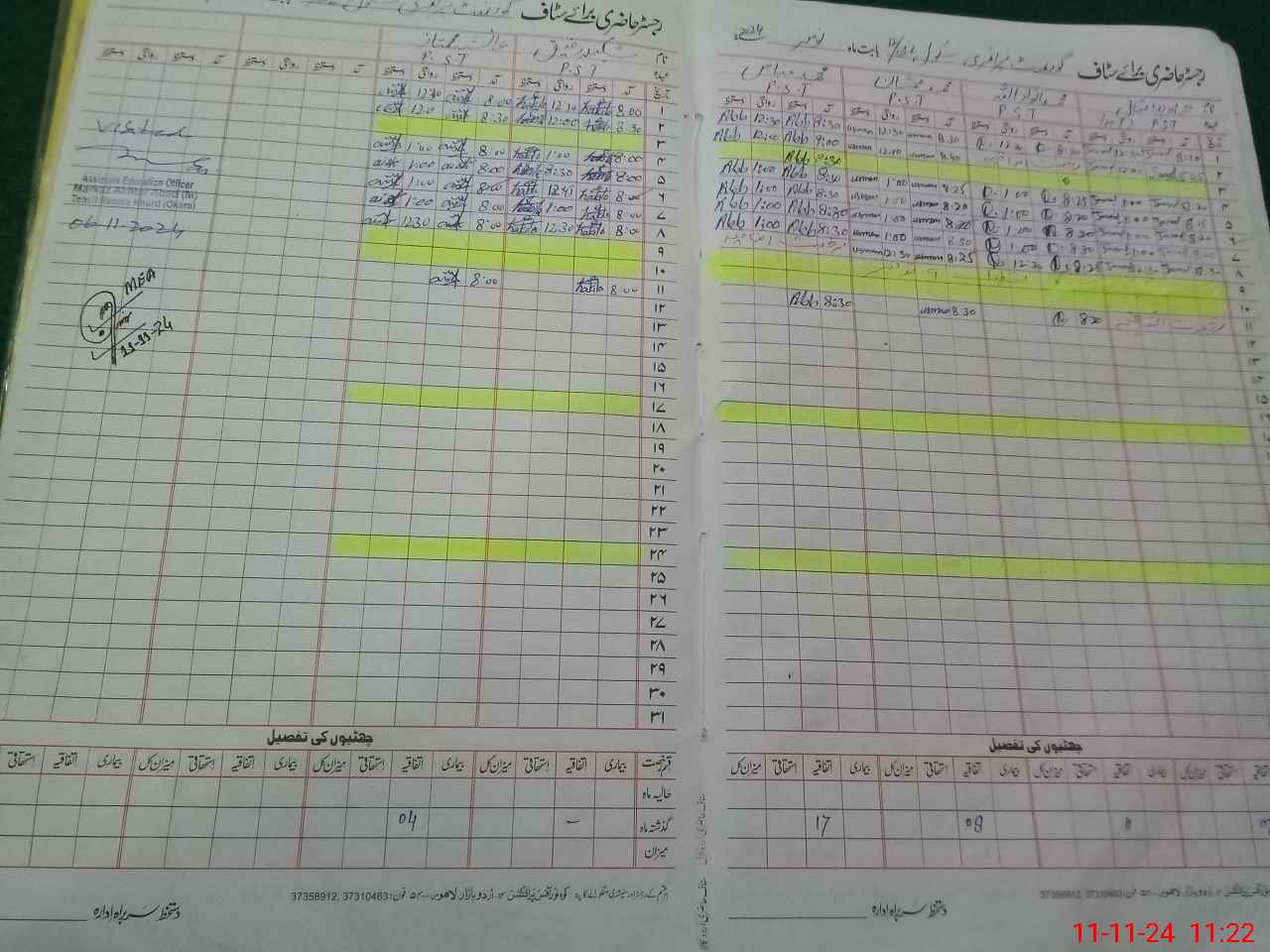 | CNIC | Full Name | Designation | R/C | Absence During Last Calender Month |