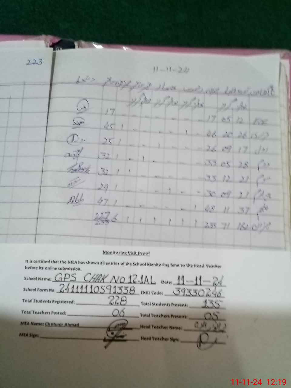| EMIS Code: 39330246 | Name of School: GPS CHAK 12/1-AL | |||