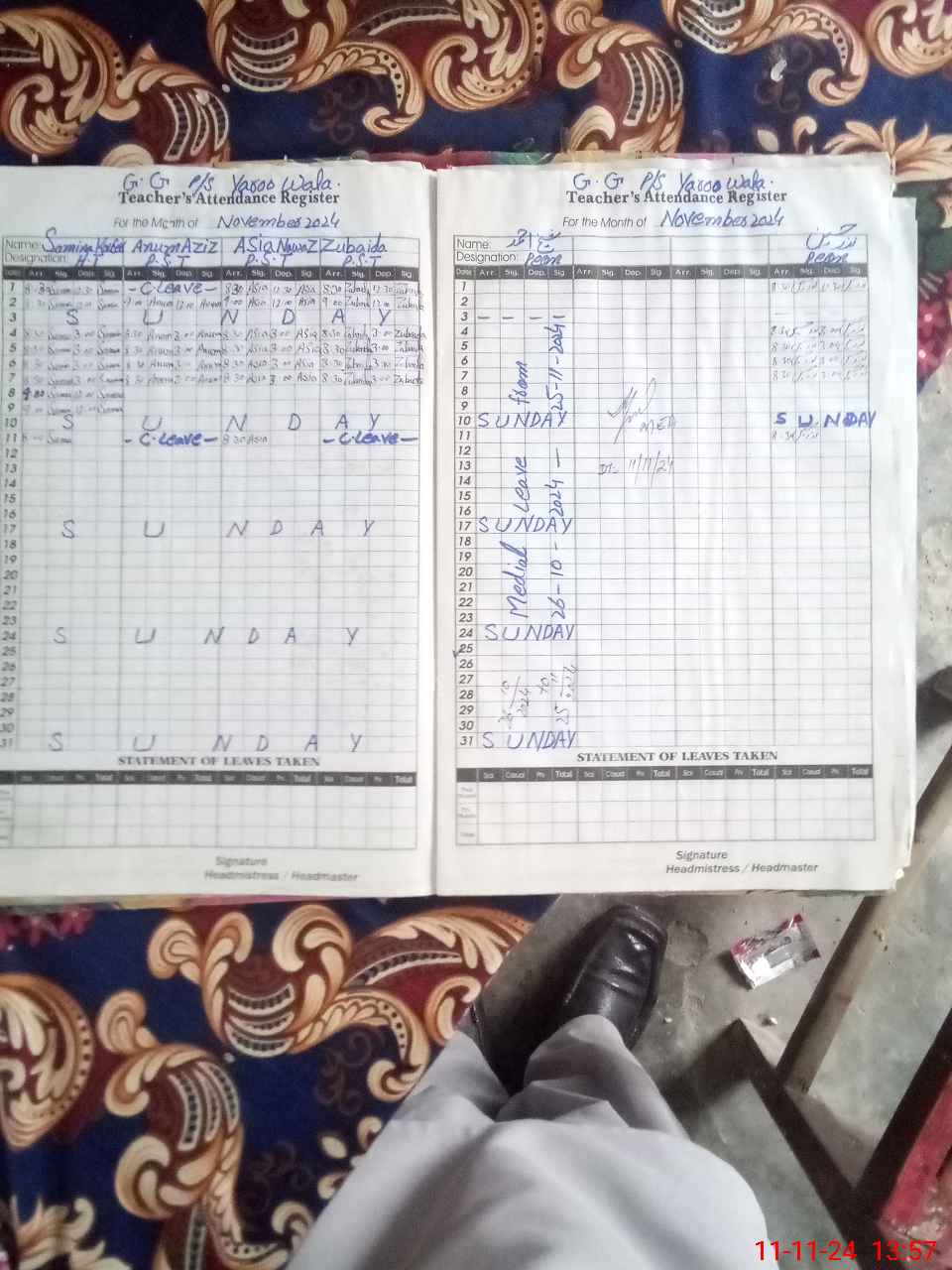 | Leave | Duty | Absent | Maternity | Medical | Ex- Pak |