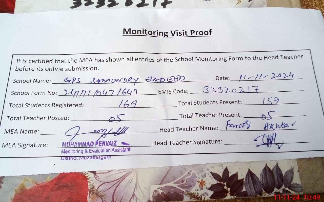 | EMIS Code: 32320217 | Name of School: GPS SAMUNDARY JADEED | |||