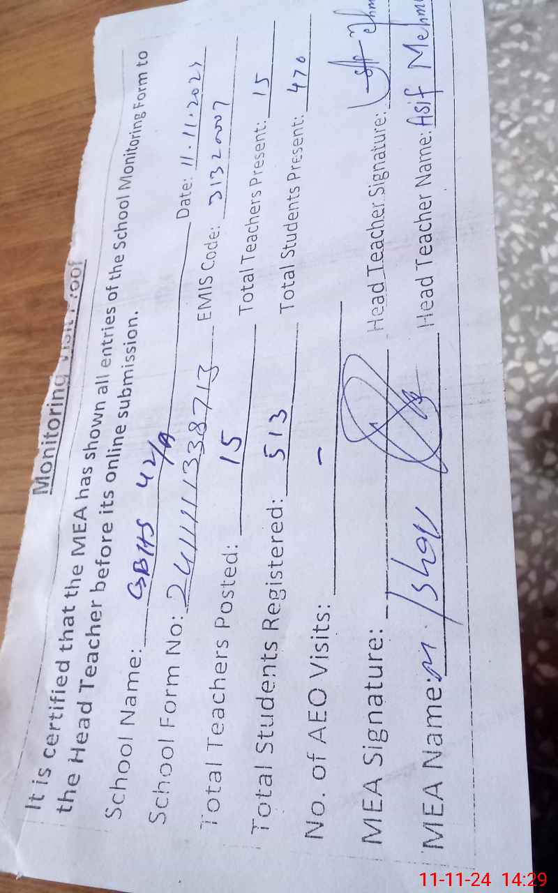 | EMIS Code: 31320007 | Name of School: GHS CHAK 42 A | |||