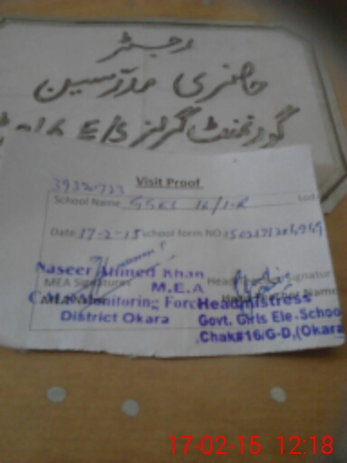 | EMIS Code: 39320723 | Name of School: GGES KHUSHI MUHAMMAD 16/G.D | |||