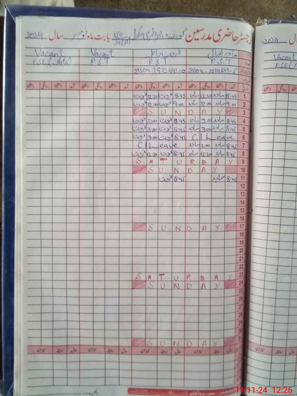 | Leave | Duty | Absent | Maternity | Medical | Ex- Pak |