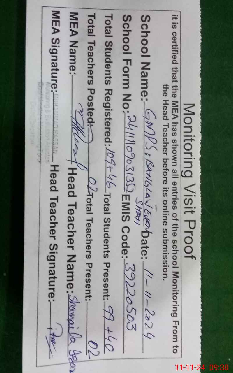 | EMIS Code: 39220503 | Name of School: GMPS BANGLA JEVAN SHAH | |||