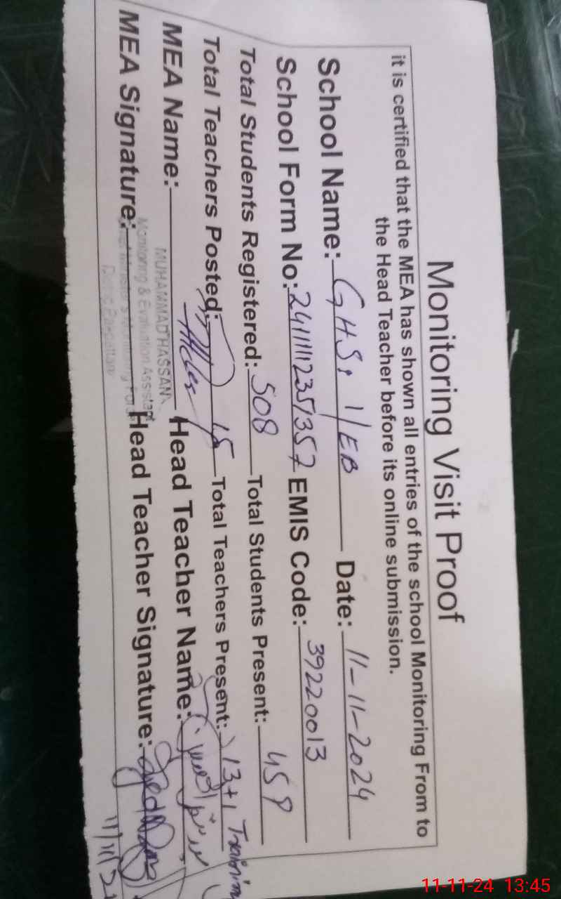 | EMIS Code: 39220013 | Name of School: GHS 1-EB | |||