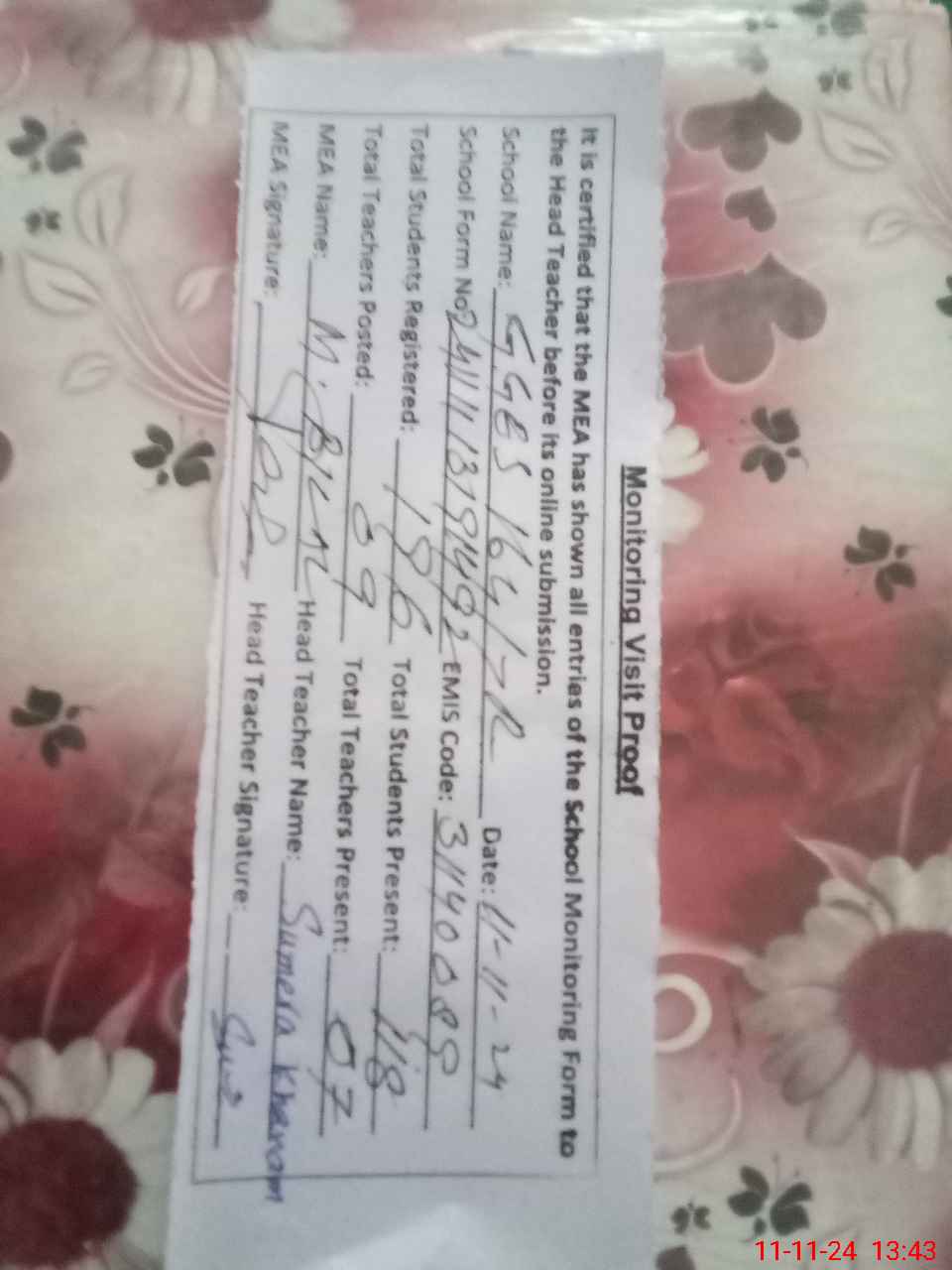 | Certified that this School was Inspected by the Undersigned MEA/DMO Today and the Information Stated Above is as Per Record. | |||||