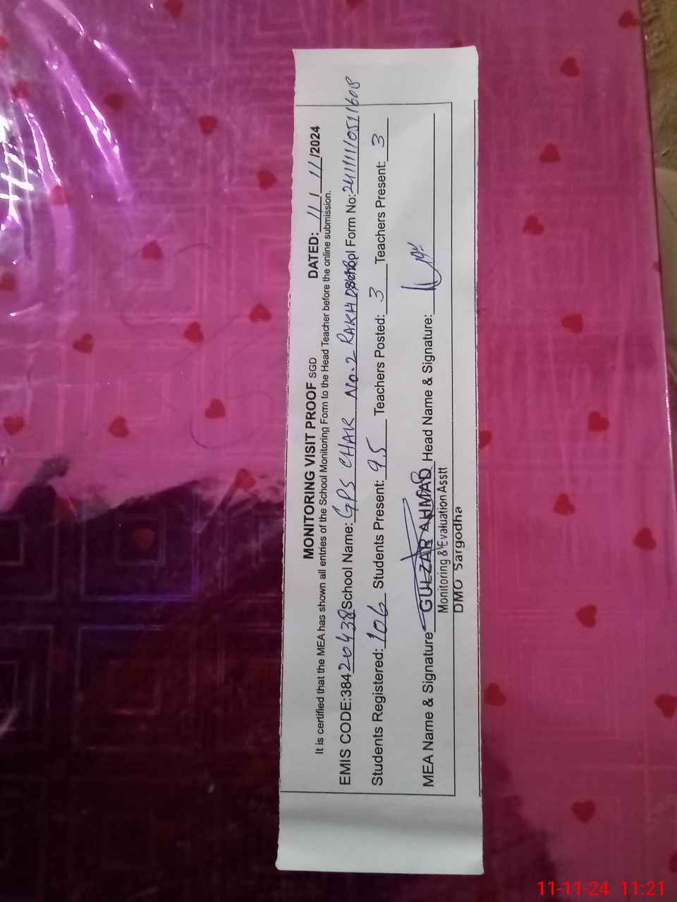 | EMIS Code: 38420438 | Name of School: GPS CHAK NO.2 RAKH DHAREMA | |||