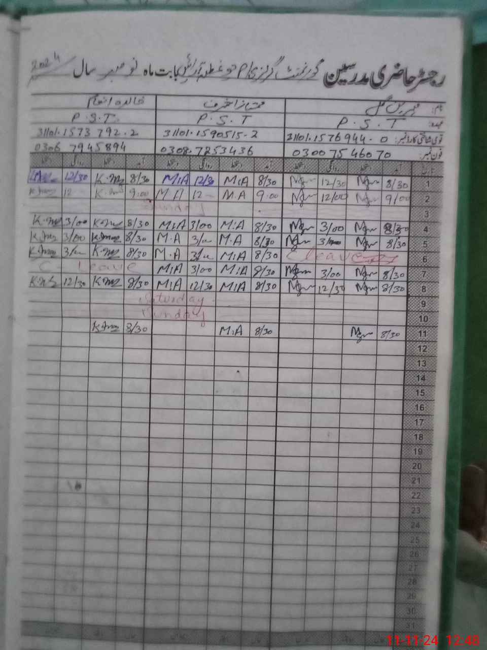 | CNIC | Full Name | Designation | R/C | Absence During Last Calender Month |