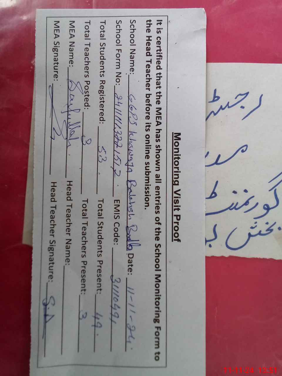 | EMIS Code: 31110491 | Name of School: GGPS KHAWAJA BUKHSH BODLA | |||
