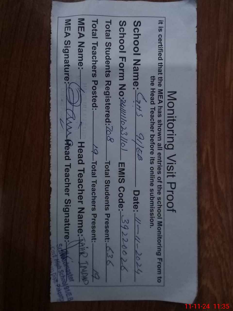 | EMIS Code: 39220026 | Name of School: GHS 91/EB | |||
