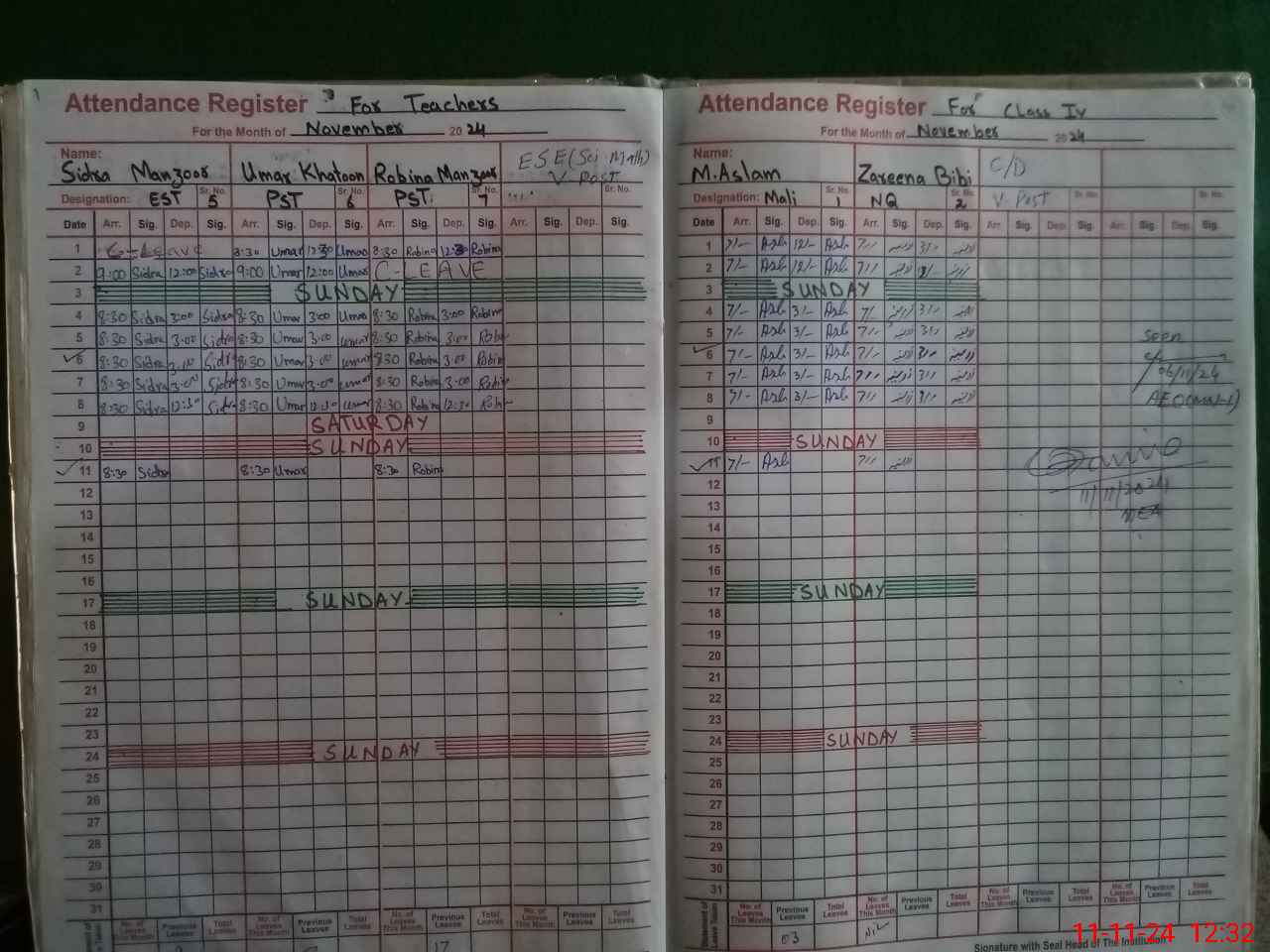 | CNIC | Full Name | Designation | R/C | Absence During Last Calender Month |
