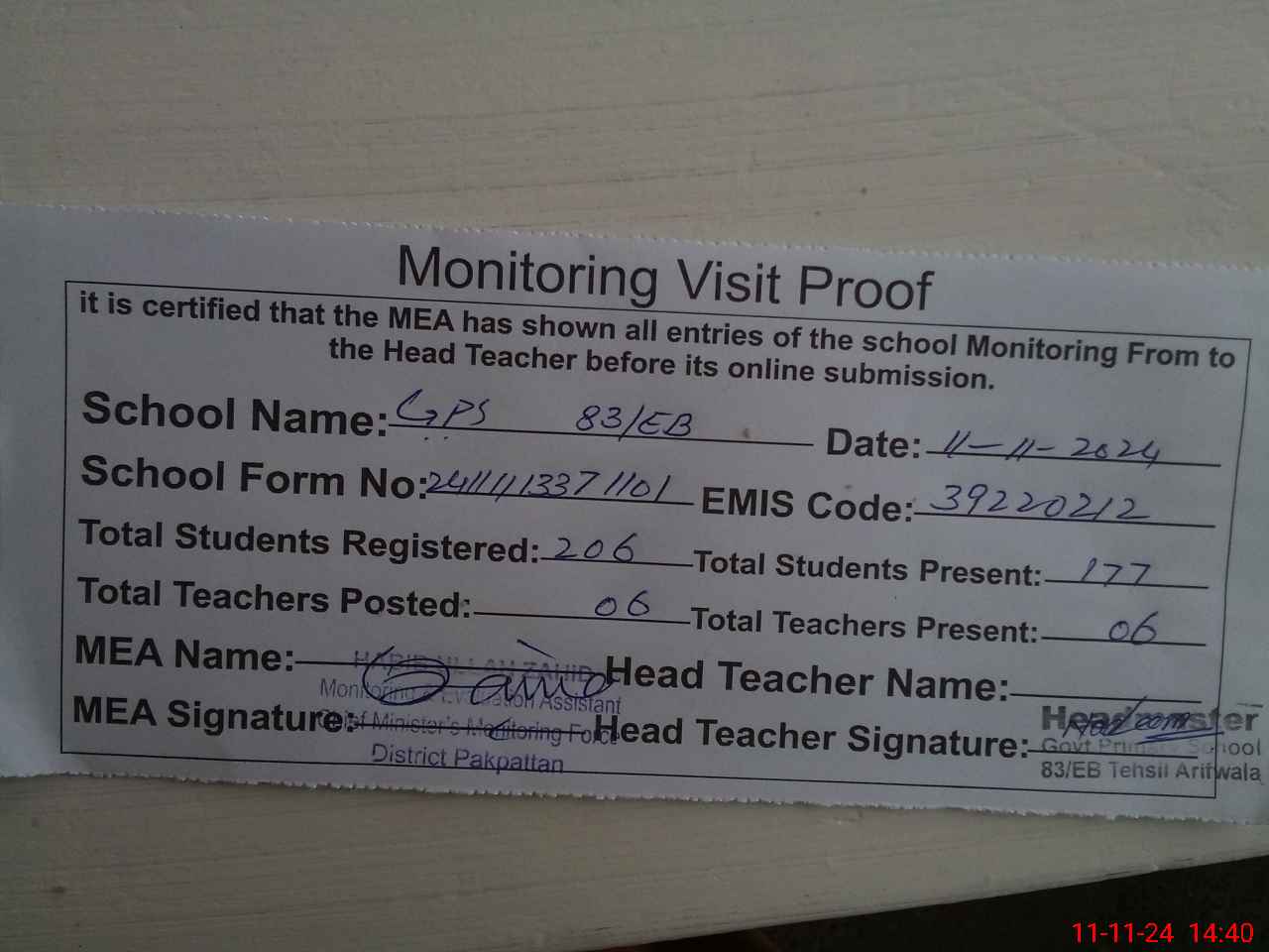 | EMIS Code: 39220212 | Name of School: GPS 83 EB | |||